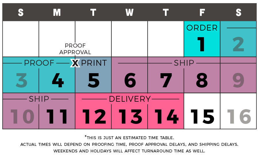 Fast turnarounds of 7-9 days or less after production proofs are approved!